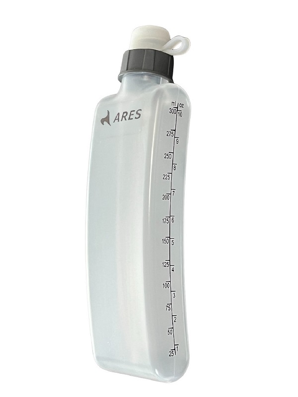ARESランニングボトルは320ml と大容量でありながら、ボトル自体が体にフィットするようカーブしており、ボトルを携帯していてもランニング中に揺れることがありません。